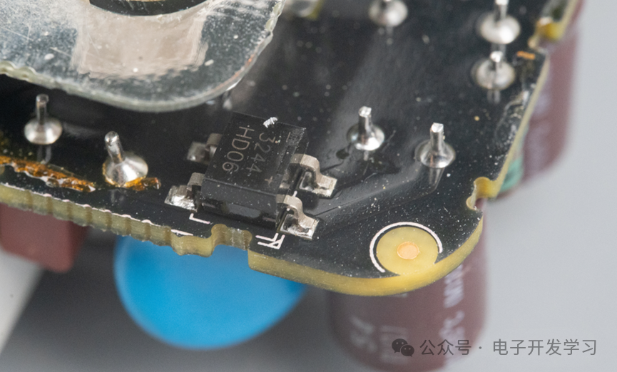 变压器背面有一个看SOP-8封装的芯片,丝印ATH5FC,大概率是一颗AC-DC芯片。