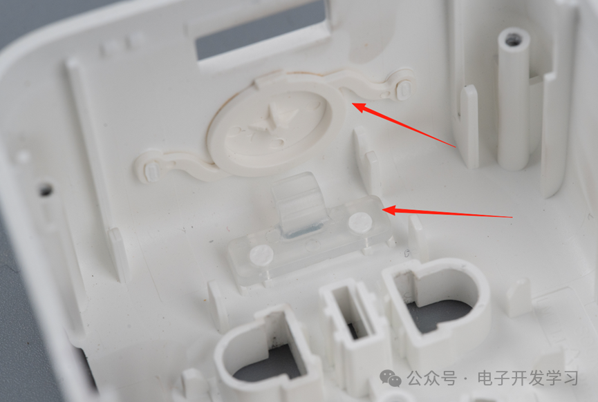 塑料外壳内部,按键和指示灯透光是这么处理的。