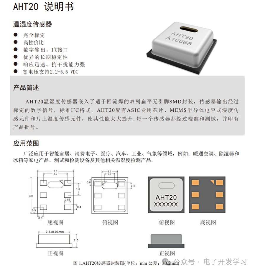 主要看一下这个器件,看样子应该是个温湿度传感器了,型号是AHT20,看起来果然是温湿度传感器,对标SHT20。查了一下,确定是温湿度传感器,来自广州奥松。
