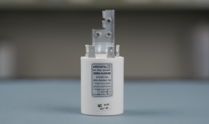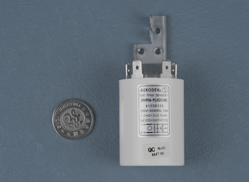 在美的洗碗机中拆出的EMI滤波器,品牌是AERODEV,型号是DNF06-P(JGDJB),
