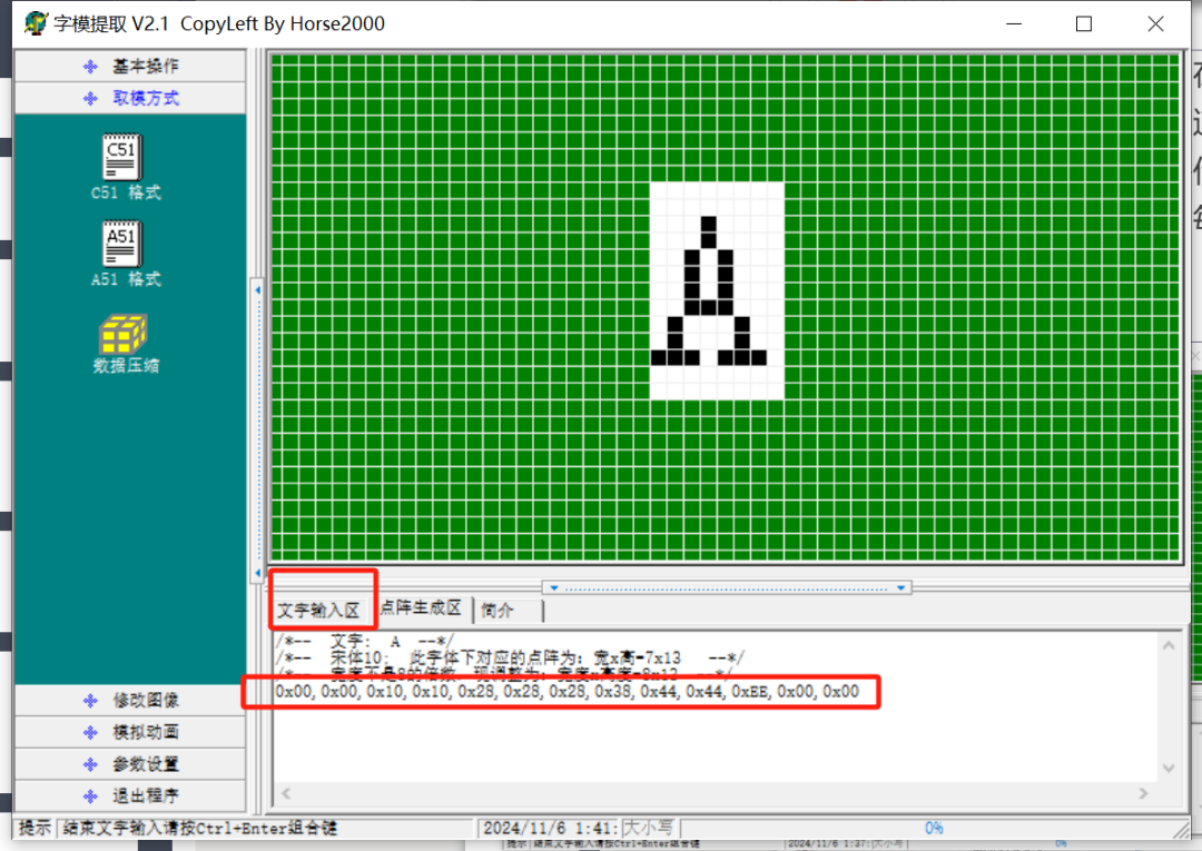 取模方式修改为纵向取模,获得我们的十六进制数据。并且创建一个文件来存放这些数据。(这里偷个懒用现成的字库,为了防止观感,直接放到最后去了)