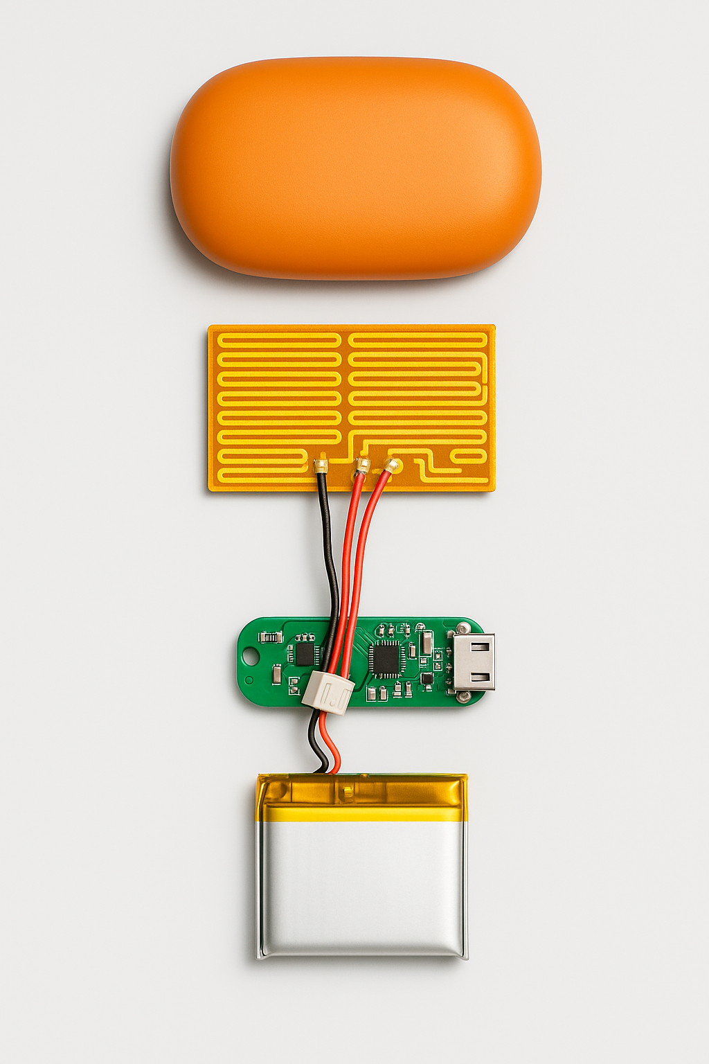 暖手宝的构造相对简单,通常由外壳、发热片、电池、主控板构成。