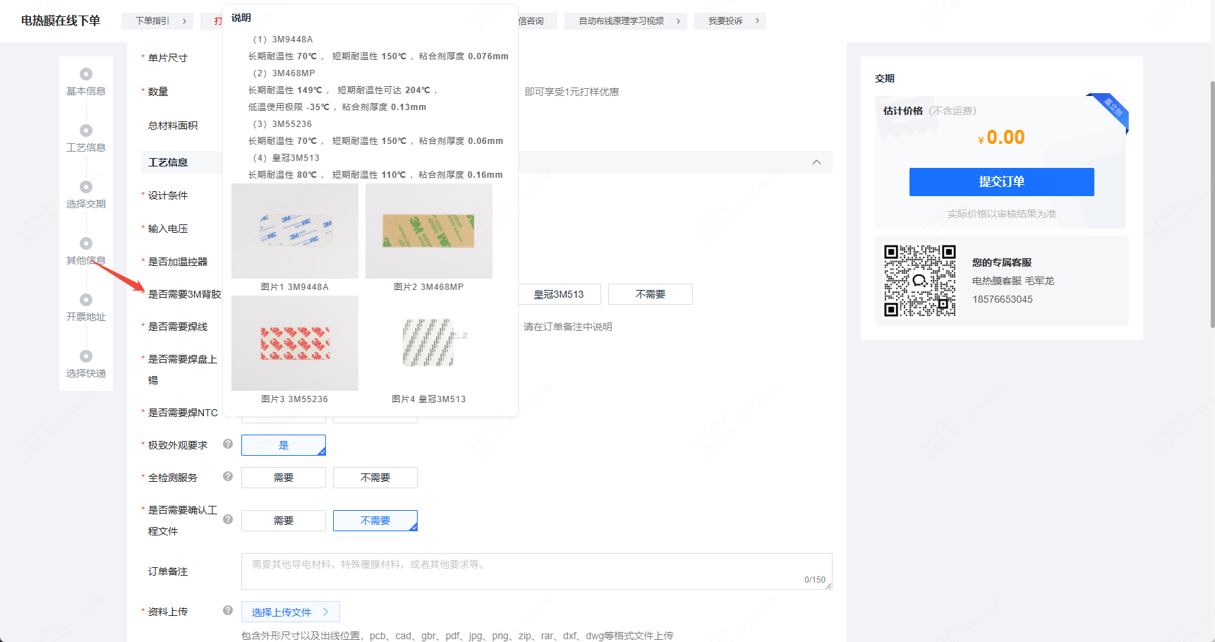 下单页面背胶选择