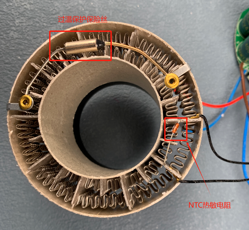 发热丝前端有一个过温度保护的保险丝,以及一个NTC热敏电阻。保护还是很到位的。