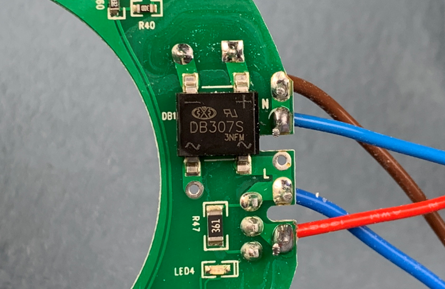 整流桥的型号是DB307S,封装是DBS,来自广东钜兴电子。