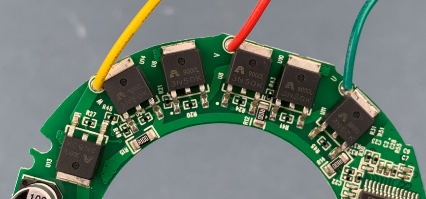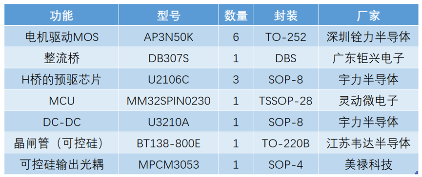 驱动电机的6颗MOS管型号是AP3N50K,封装为TO-252,来自深圳铨力半导体。这6颗MOS构成了驱动无刷电机的三相H桥。