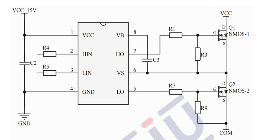 这是吹风机类型的应用中U2106C驱动H桥的典型电路。
