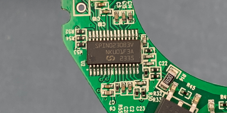 这颗来自灵动微电子的MM32SPIN0230是这个吹风机的主控芯片。这颗芯片采用了采用Cortex-M0内核,集成了运动控制所需的专用模拟外设。从片上资源来看,这个芯片比较适合的应用场景就是有电机驱动的场景,这也是灵动微电子一直以来最擅长的领域。