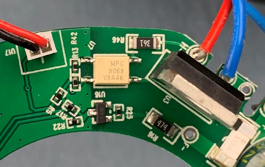 驱动晶闸管(也叫可控硅)需要一个带过零检测功能的可控硅输出光耦,这个光耦的型号是MPCM3053,来自美禄科技。关于可控硅输出光耦驱动可控硅实现加热的设计,网上可以找到非常多的资料,这里有一个比较经典的型号,就是安森美的MOC3061。