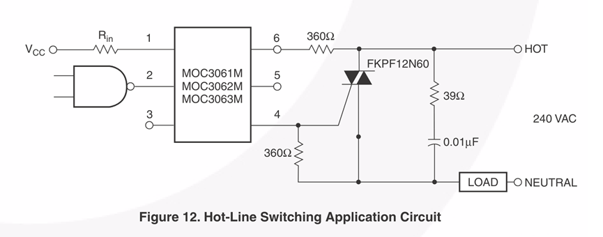 上面的原理图就是一个经典的使用MOC3061驱动晶闸管对加热丝进行加热的原理图。图中的FKPF12N60就是一个晶闸管。