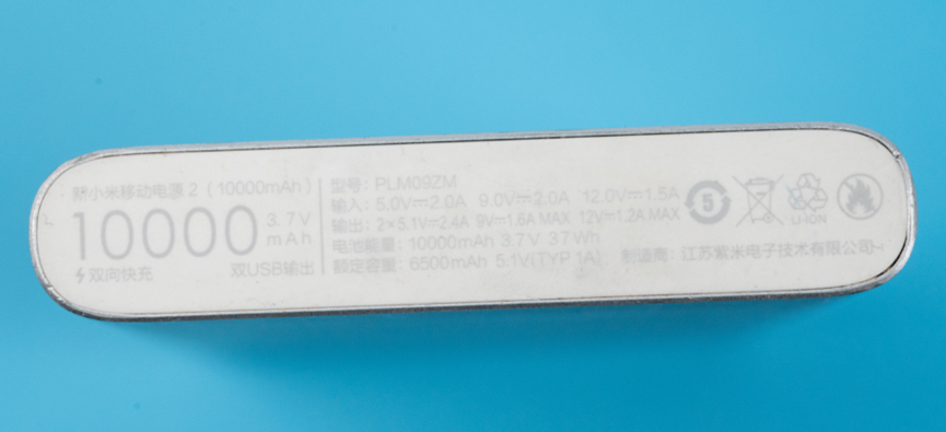 容量10000mAh,型号PLM09ZM,双向快充,输入支持5V2A、9V2A、12V1.5A,也就是说最大输入充电功率是18W。