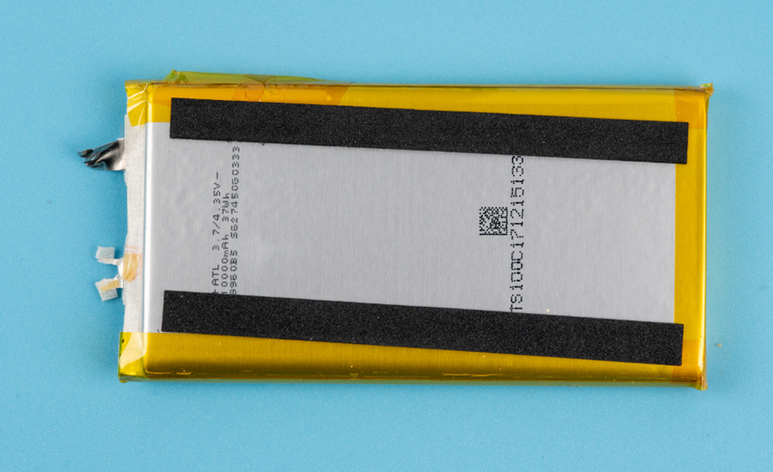 用的是这种软包锂离子电池。电池两侧贴有EPDM泡棉起到一定的缓冲作用,防止磕碰伤到电池包。
