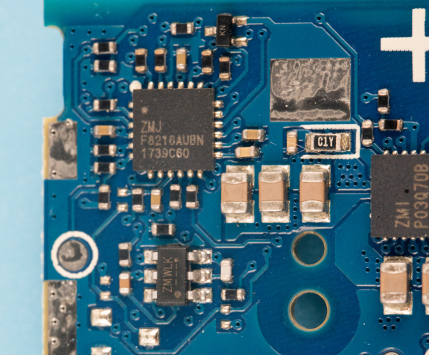 另一颗芯片是ZMJ F8216AUBN。看命名规则应该也是紫米的芯片,具体型号功能未知。下面还有一个SOT23-6封装的器件,丝印ZMWLK,也没有找到这个芯片的相关资料。