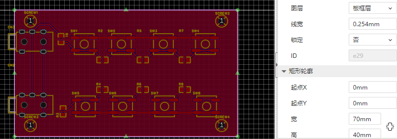 在开始学PCB时,不少教程基本都选择PCB板框起点为(0,0),所以开始我也这样做,并且在设计元件布局时还可以提前参考坐标轴。如图