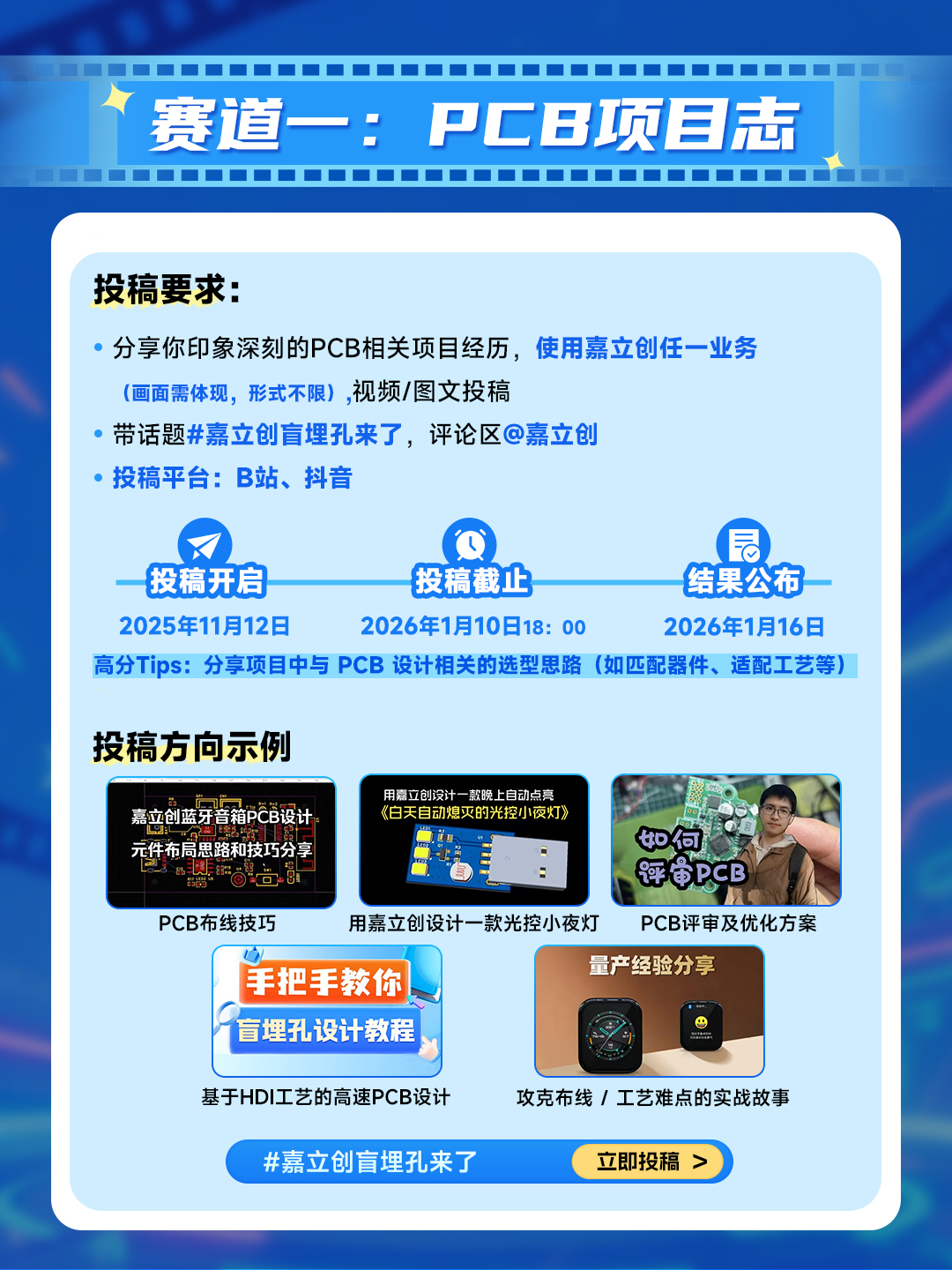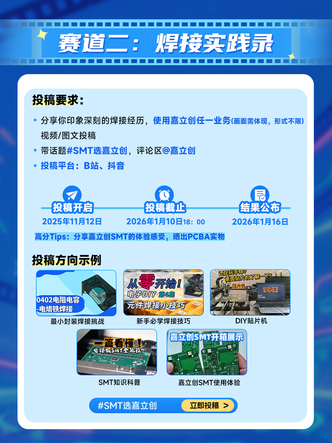 “PCB项目志”和“焊接实践录”两大赛道任你选