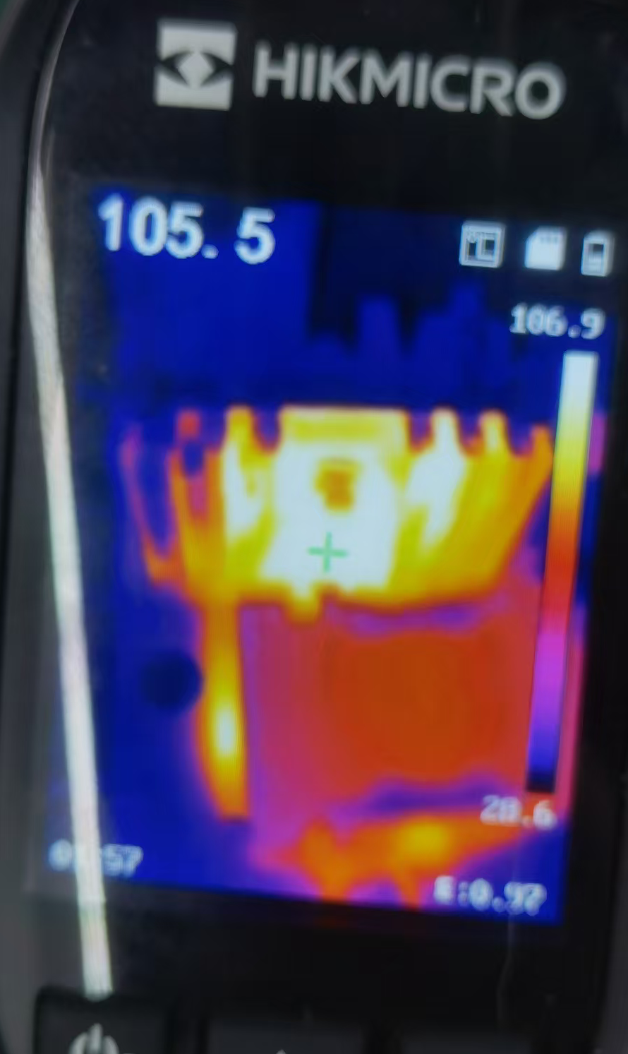 mos管运行3分钟后,温度变化,十分钟后超过100℃。