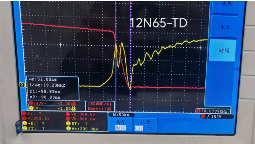 2、栅极电阻从47Ω,逐步减小至10Ω,栅极驱动从300多ns加快至100多ns,但mos管发热没改善;