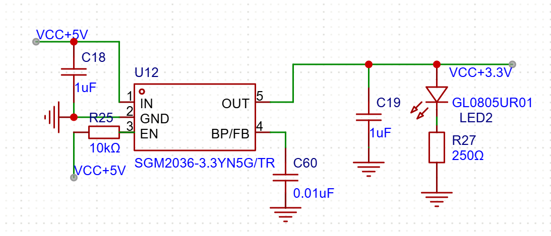 使用SGM2036-3.3芯片做5v转3.3v的电路,为什么输出是3.8V?