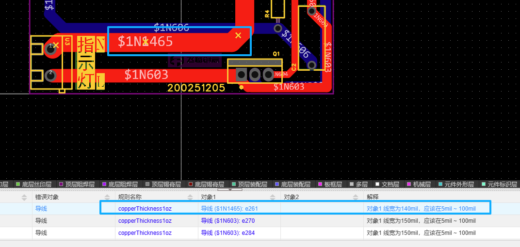 布线超100mil提示物理错误