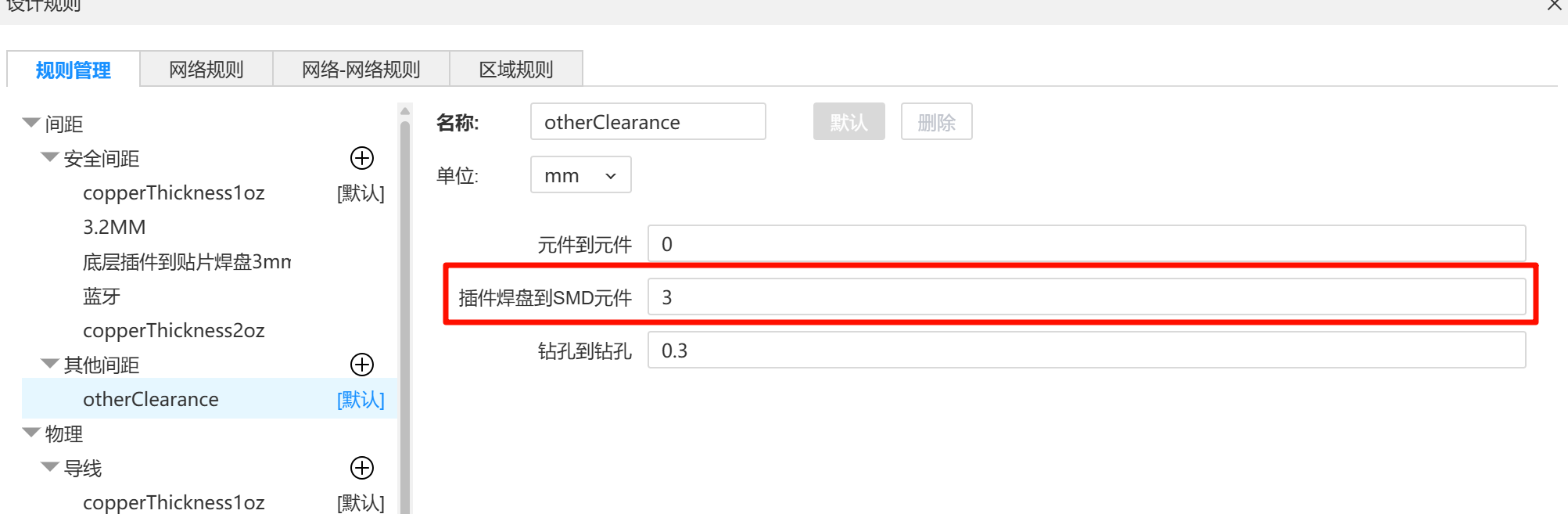 设置插件焊盘到SMD元器件的间距,怎么设置可以 只检测底部的元器件?
