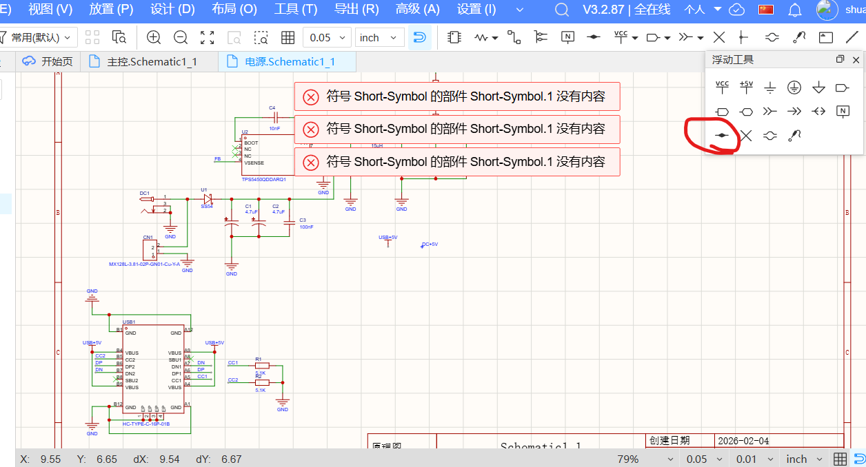 点这个短接标识符显示没有内容,之前有个电容也没有内容,但我以为是正常的,因为不是这个浮动工具里面的
