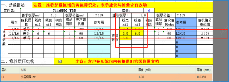 推荐参数标的是5.5/6.5mil,但实际生产稿是6.5/5.5mil,这种要重新改参吗?