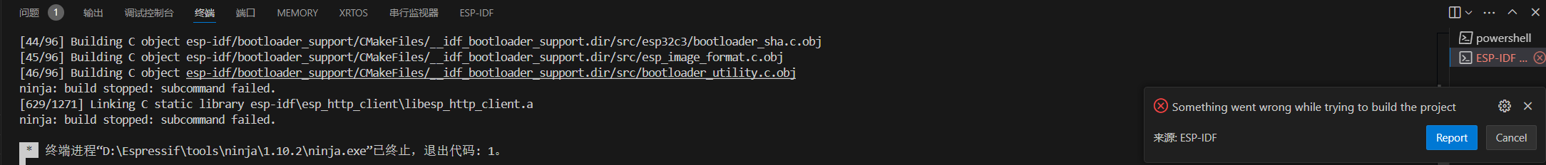 [629/1271] Linking C static library esp-idf\esp_http_client\libesp_http_client.a ninja: build stopped: subcommand failed.