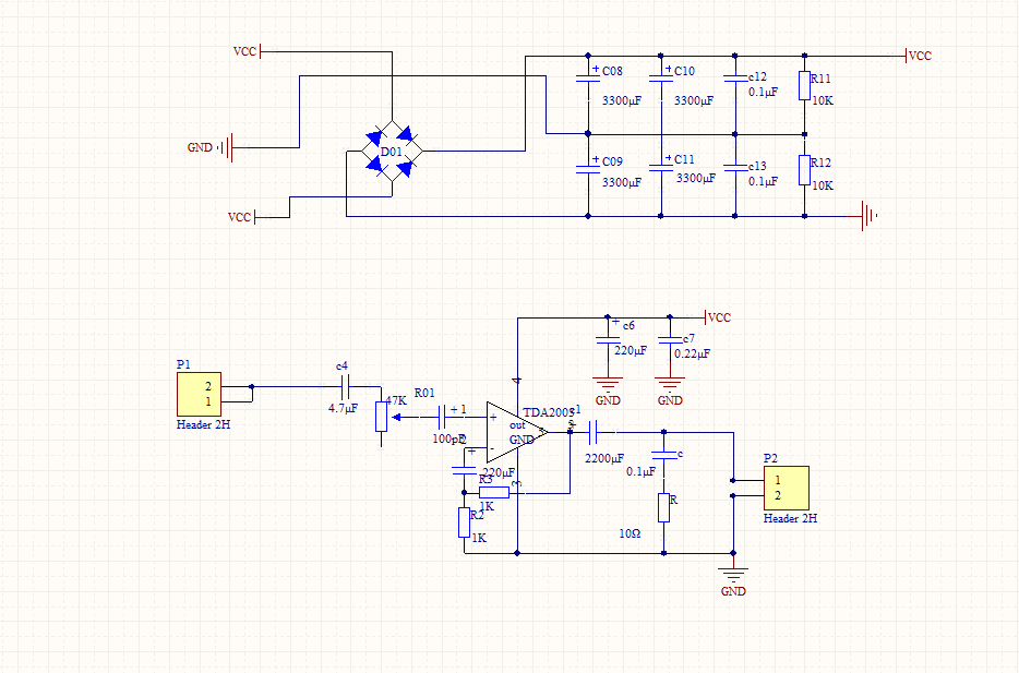 PCB原理图电源和功放分成了两份,PCB该怎么接线?