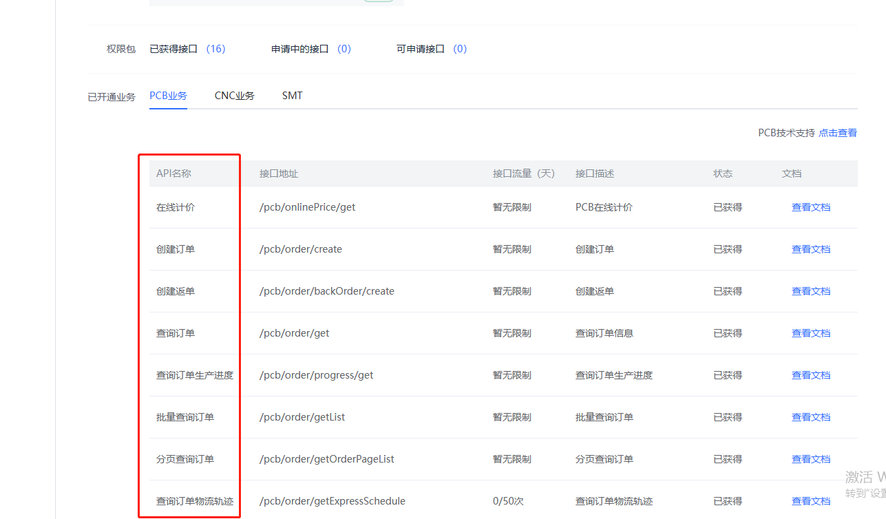 自动生成入库单:采取调用嘉立创API接口“查询订单物流轨迹”,完成查询,发货完成的自动生成入库单。