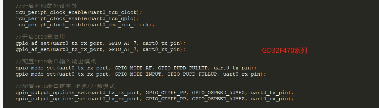 GD32F1系列使用串口0时,对应的GPIO口初始化过程中,以PA9 PA10为例子。正常初始化即可,TXRX复用推挽输入浮空。但是F4系列在此基础上,必须开启复用AF,这是为什么?