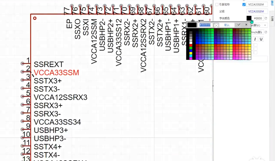 立创EDA2.2.34芯片引脚不能修改字体颜色吗?