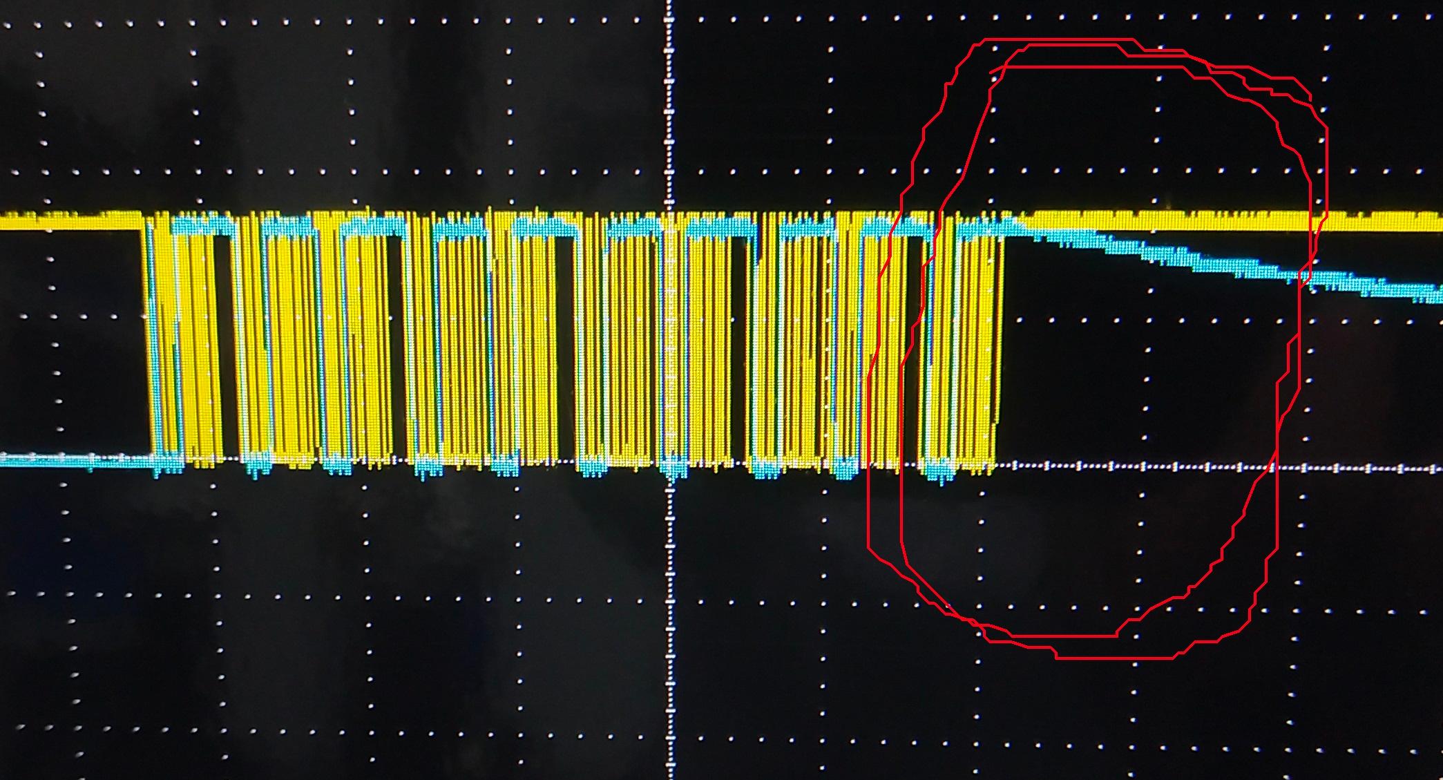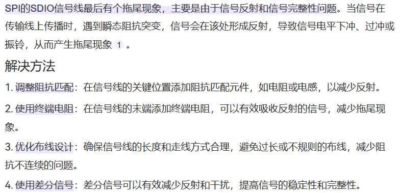 SPI这个SDIO信号线的波形咋有个拖尾咋办?
