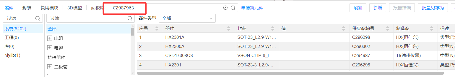 嘉立创eda专业版 无法根据商城编号搜物料封装