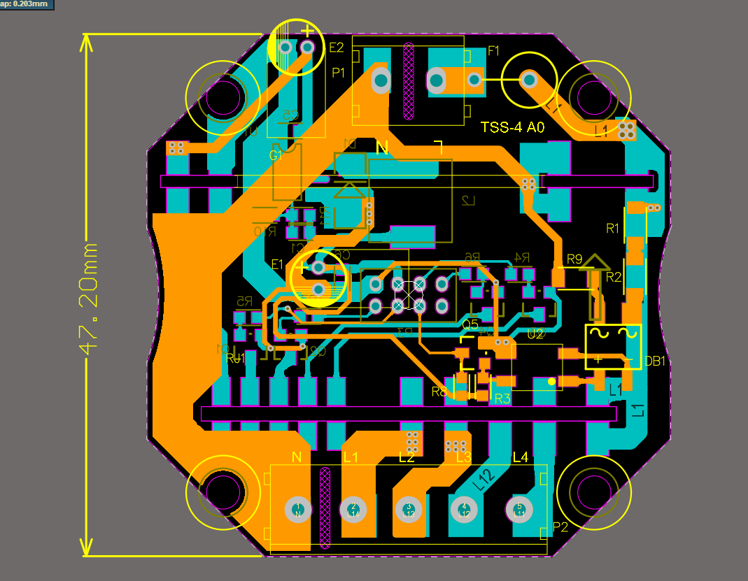 AC-DC降压电路是隔离的,有变压器,输出功率4W,另一个控制板有WIFI和RF模块#畅聊专区#,4个触摸按键