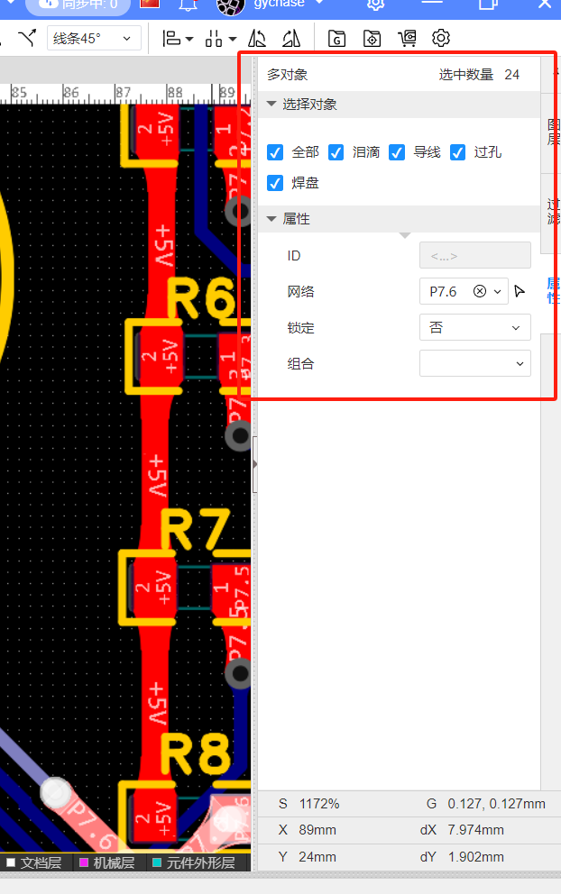 立创EDA专业版,点击走线全部变成“多对象”了,没办法单独选择一段走线或者过孔。