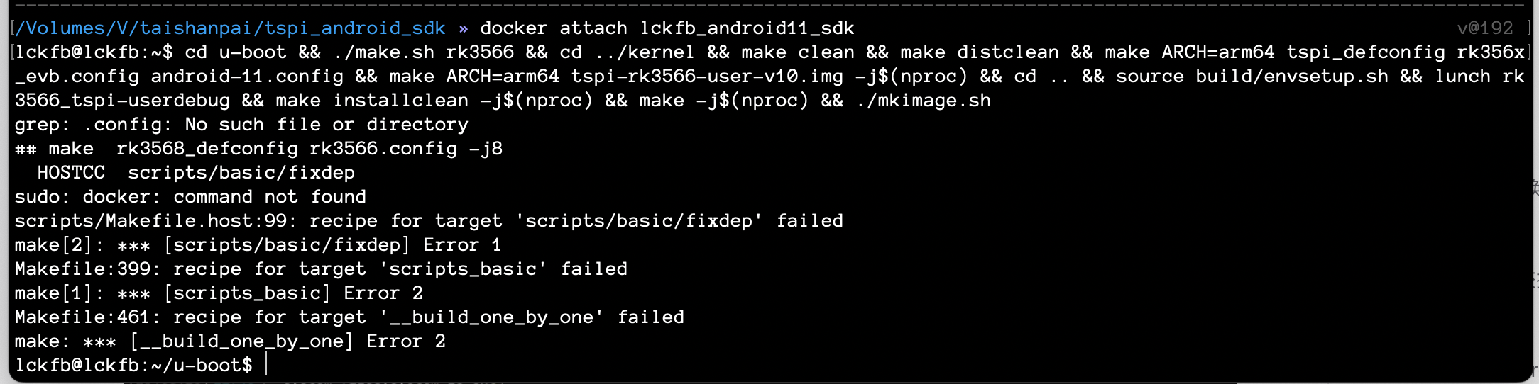 泰山派,在mac系统下搭建了docker环境,执行编译的时候报错