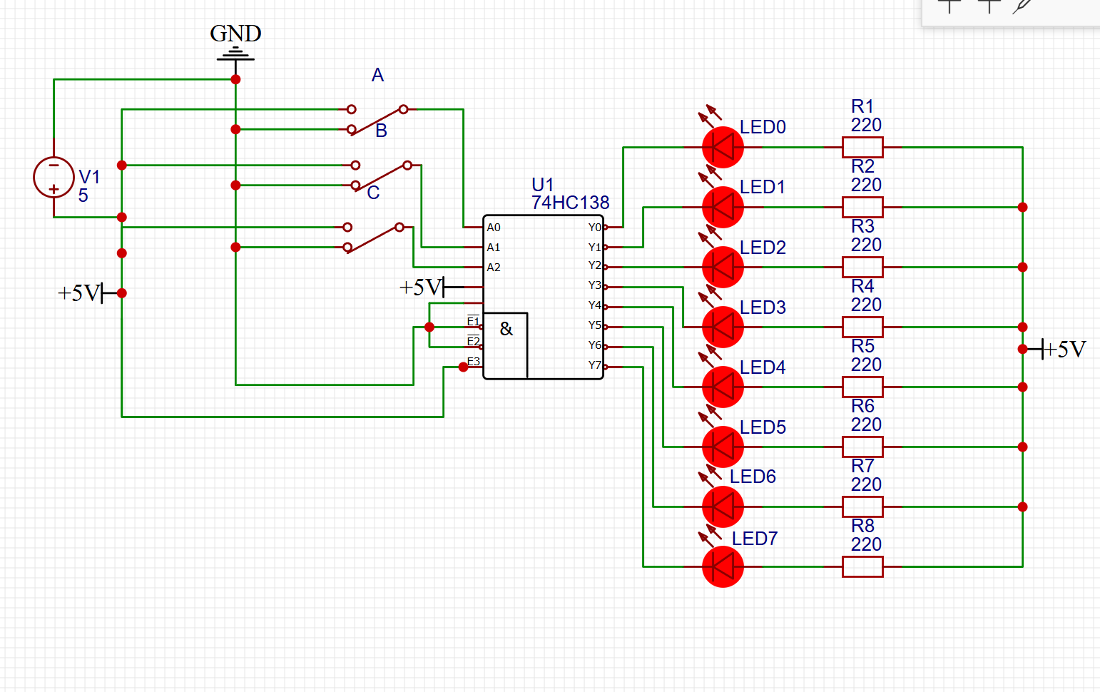 这是仿真74HC138译码器的原理图,为什么我点击仿真后,灯泡全亮啊。