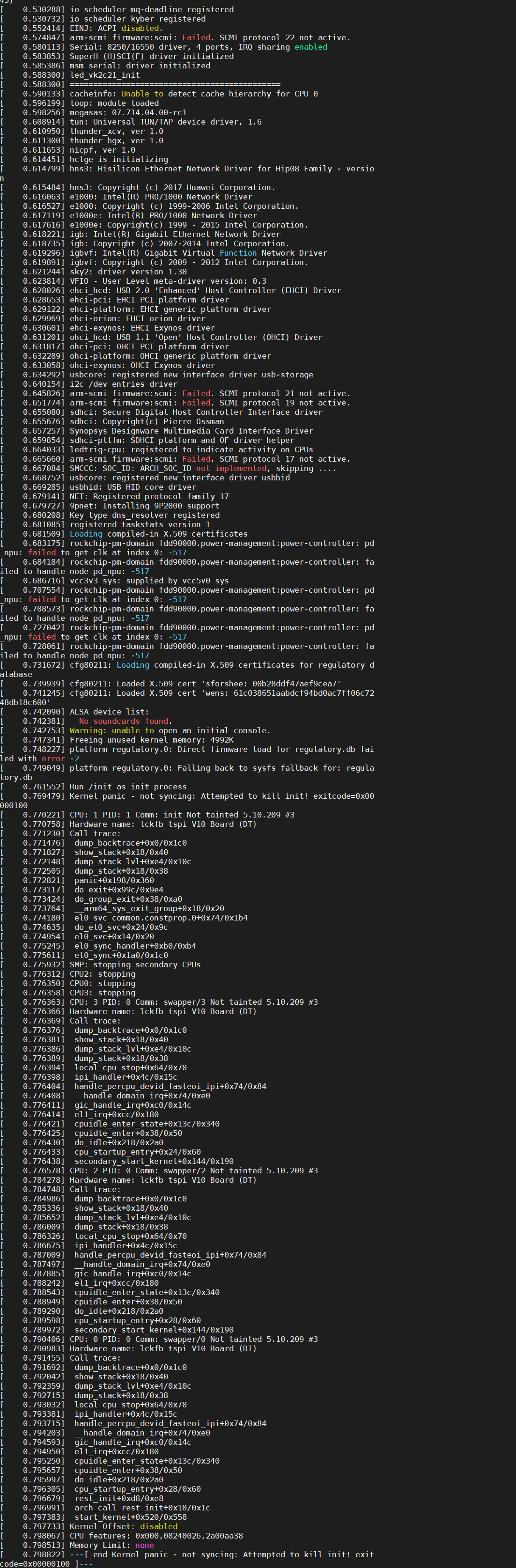 泰山派Linux5.10+ubuntu22.04 rootfs镜像,编译烧录后开机kernel报错