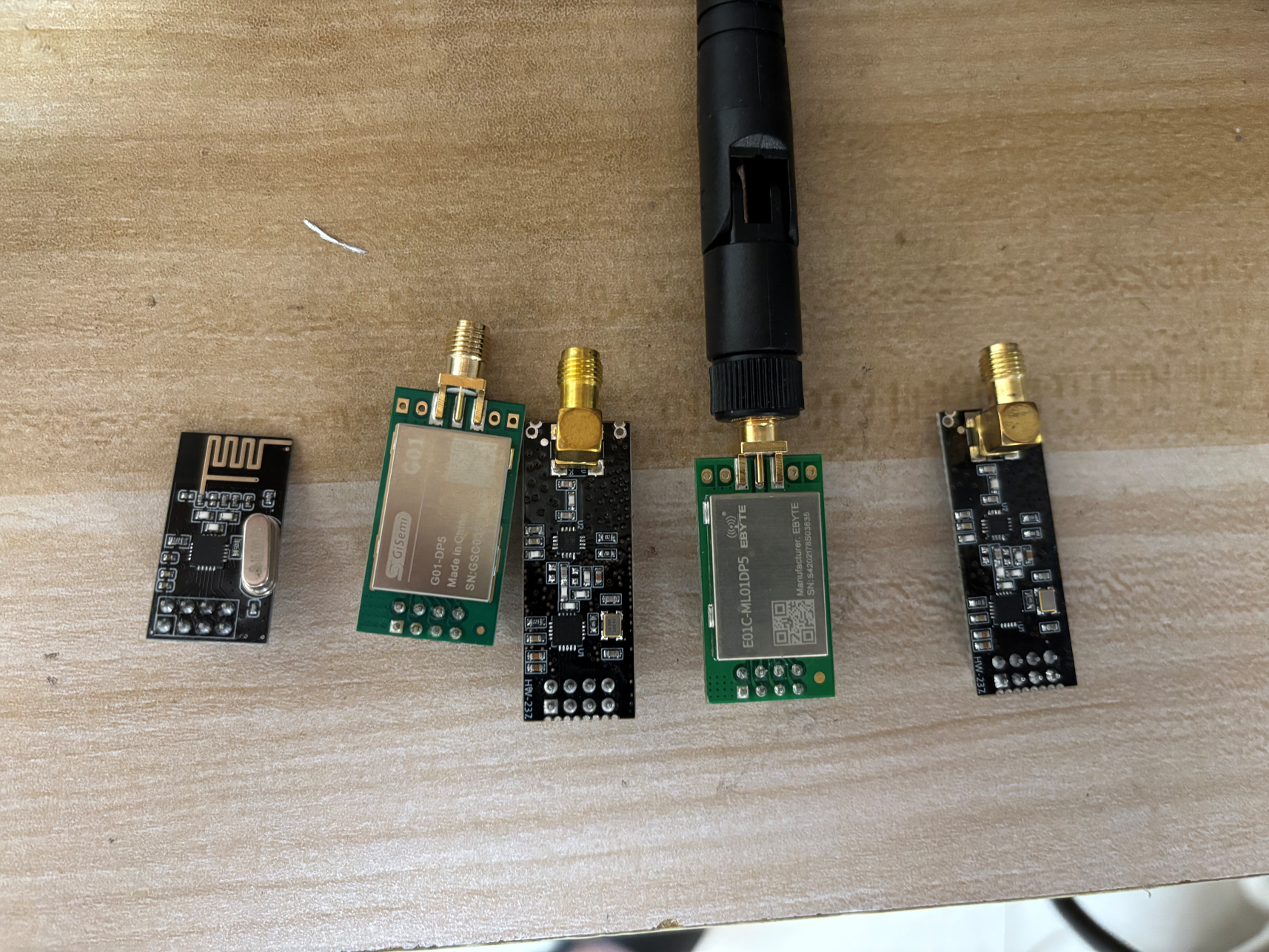 1. 更换了不同的无线模块对比测试,使用了兼容nrf24L01+,包括亿佰特、集芯微家的。(看下图)