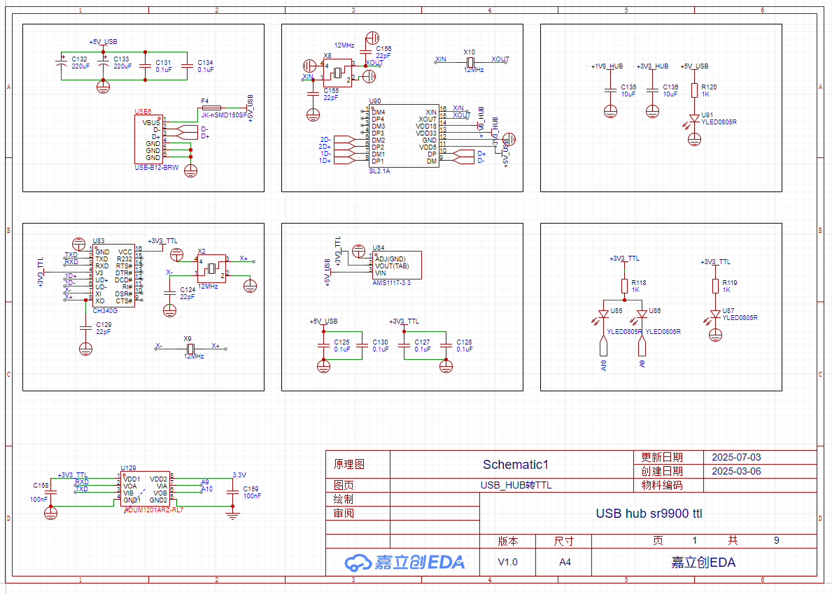 另外一部分为USBhub,USB转ttl,USB转ttl使用隔离芯片与stm32F103进行连接,还有一个为转SR9900网口,