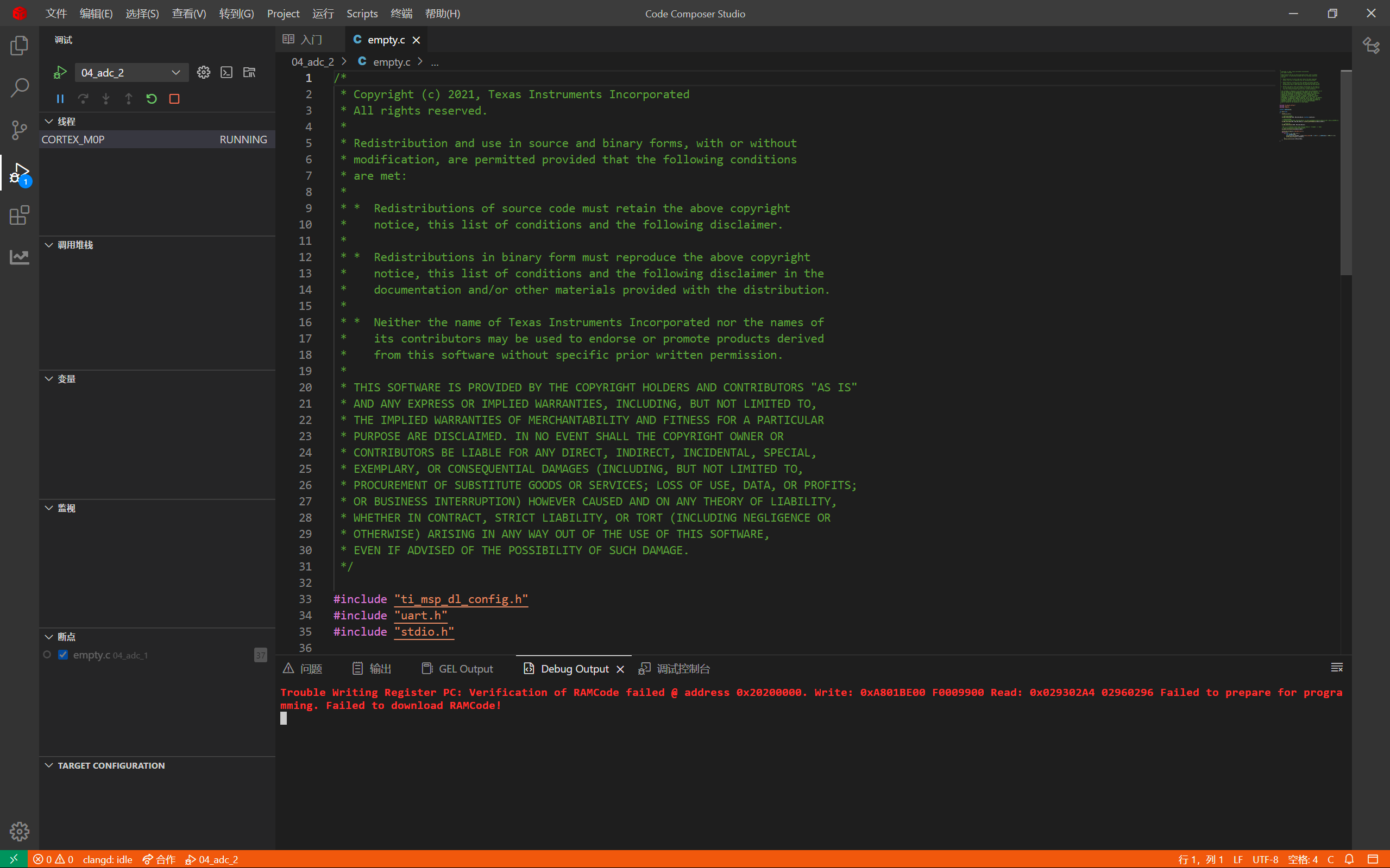 求助啊,mspm0g3507在用ccs开发过程中,突然无法烧录调试程序,并且报错提示如图