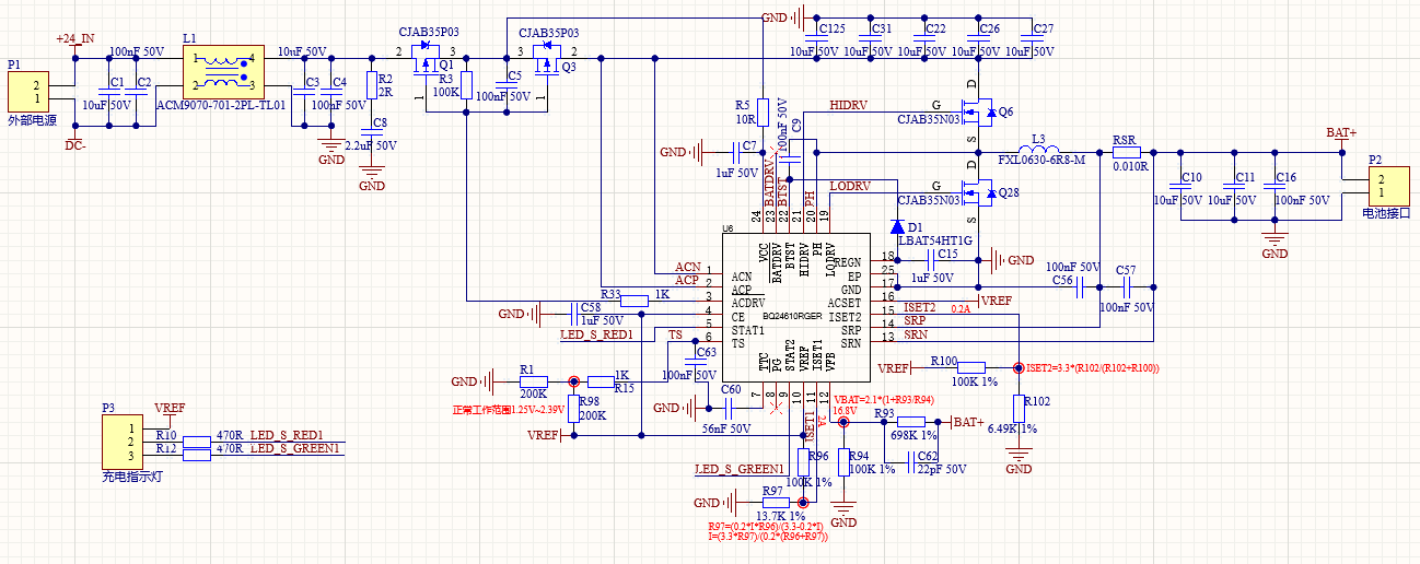 最近画了一块用BQ24610芯片给4串锂电池充电的板子,总共5块全贴片,充电电压16.75V,充电电流3A,预充电电流0.3A,无热敏电阻,无输入电流限制,充电电流采样电阻为10mΩ。 发现在电池即将充满时,大概16.2V开始,STAT1状态指示灯由常量转变为周期性闪烁,STAT2指示灯始终常灭,充电过程也在充电与停止充电之间周期性切换,用示波器测量VFB引脚电压,在2V与1.95V之间跟随充电过程周期性规律变化,开关管也跟随充电过程规律性工作与关闭,REGN电压为6V,即便如此充个1个多小时也能把电池充满,此时STAT1灭,STAT2常量。 网上搜了各种资料,并没有发现有什么可靠解决方案,手摸VFB也不会变正常,VFB在正常充电过程中电压没有波动,很平稳,而且问题只出现在电池接近充满的时候。[大哭] 有没有大佬知道怎么解决这个问题的