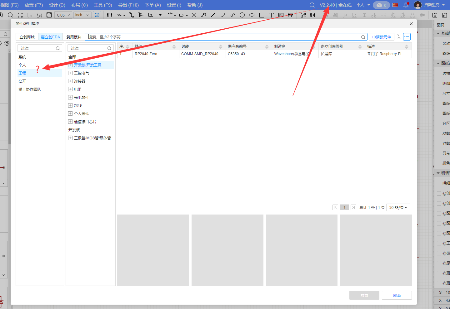 旧版本这里应该是可以找到已经收藏的器件的,不知道为什么更新到2.2.40就找不到“收藏”了